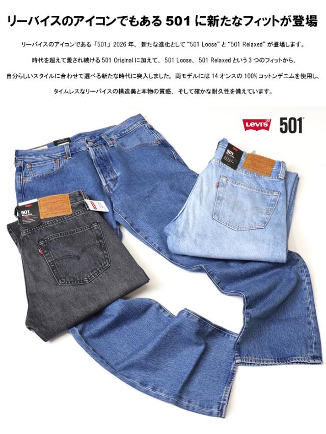 2026年、新たな進化として“501 Loose”と“501 Relaxed”が登場します。 時代を超えて愛され続ける501 Originalに加えて、501 Loose、501 Relaxedという3つのフィットから、自分らしいスタイルに合わせて選べる新たな時代に突入しました。 両モデルには14オンスの100%コットンデニムを使用し、タイムレスなリーバイスの構造美と本物の質感、そして確かな耐久性を備えています。 ボタンダウンシャツを合わせた洗練されたスタイルから、ヴィンテージTシャツと合わせたラフな着こなしまで、501 Looseと501 Relaxedは、世界初のジーンズが持つタイムレスな魅力を損なうことなく、多彩なスタイルを可能にします。