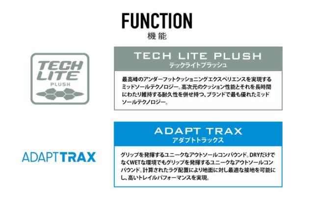・乾いた路面や濡れた路面など、様々な環境でグリップを発揮する高いグリップ力を誇るアウトソール「アダプトトラックス」
