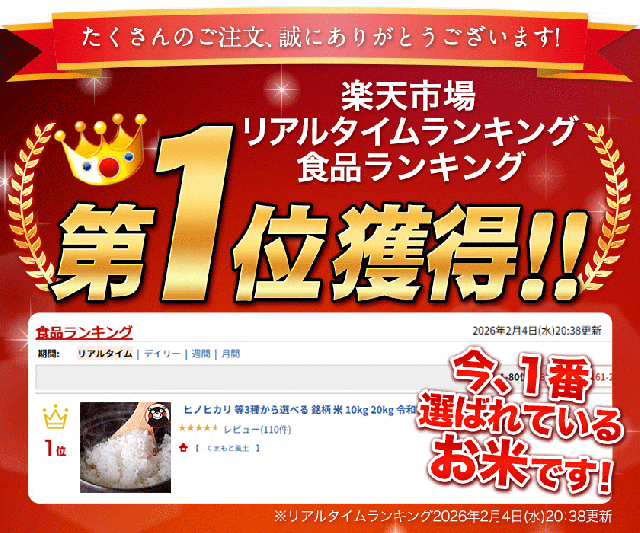 | 割合 | 令和7年産 単一原料米 熊本県産ヒノヒカリ10割/熊本県産森のくまさん10割/熊本県産くまさんの輝き10割 |