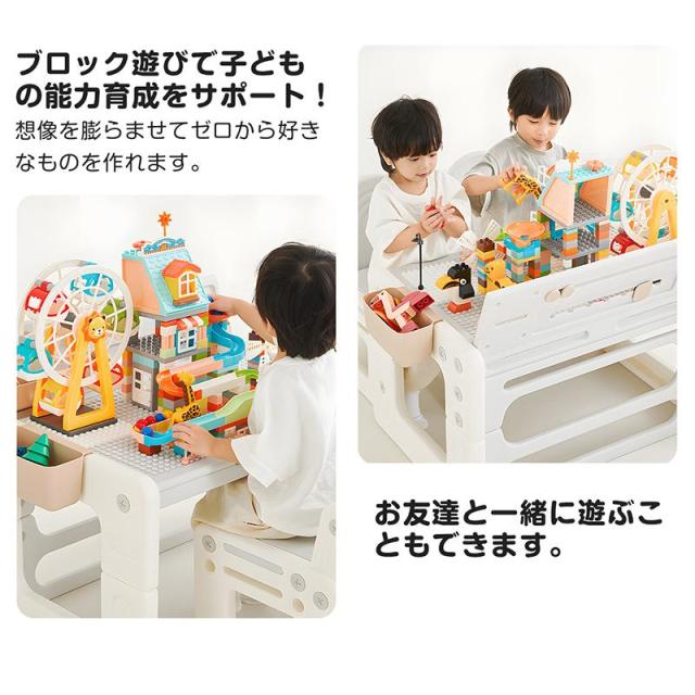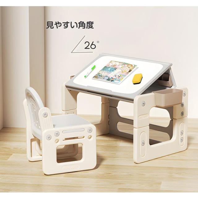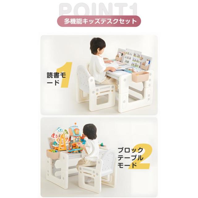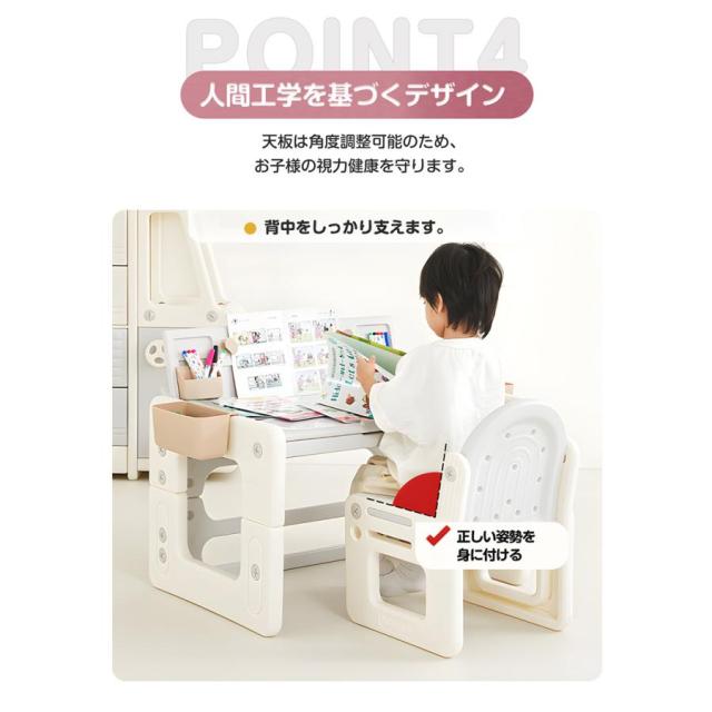 【4in1】キッズデスク&チェア 三段階高さ調整 対象年齢:1?10歳 海外SNSに話題のキッズデスク&チェアセット 多機能キッズデスクセット読書モード+食事モード+絵描きモード