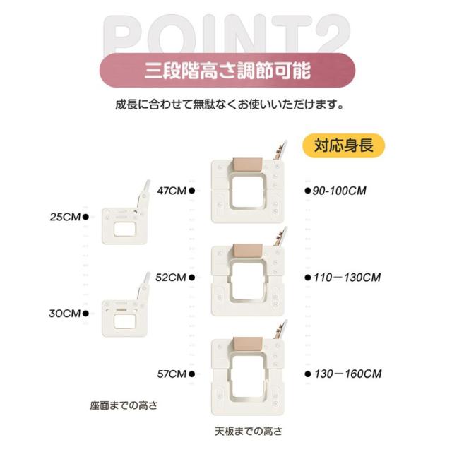 【三段階高さ調節可能】成長に合わせて無駄なくお使いいただけます。