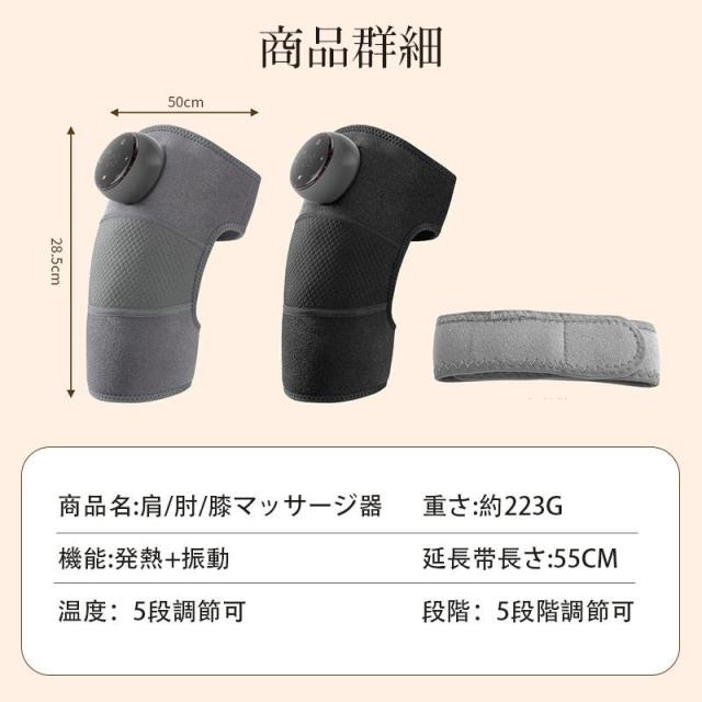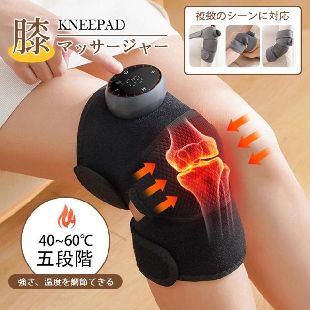 膝マッサージャー 電熱膝マッサージャー 1個 膝サポーター 液晶モデル 5段階強度 温度調節可能 多用途 関節対応 膝 肩 肘 膝マッサージ器