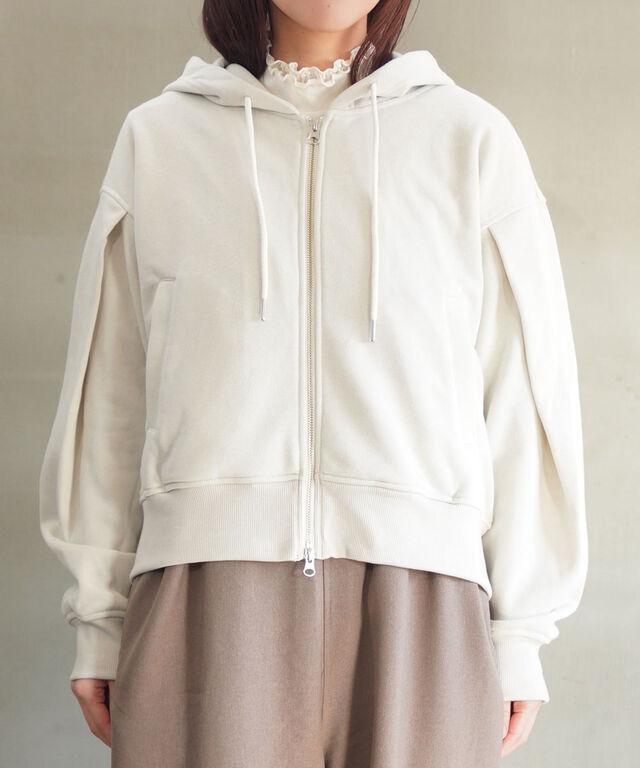 繊細なラメがさりげなく光るジップパーカー。