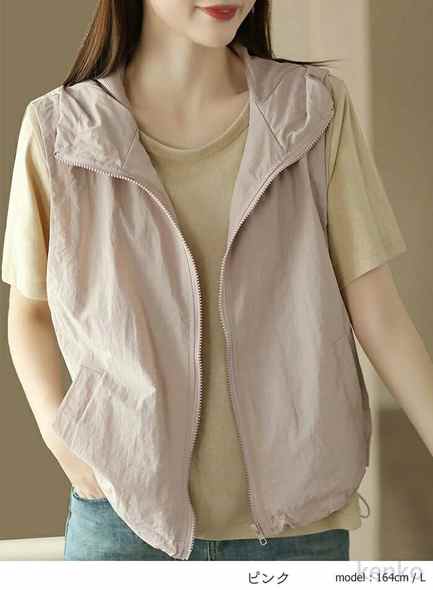 送料無料 ベスト レディース パーカー 前開き 夏 スポーツベスト メッシュベスト 熱中対策 涼感 アウトドアベスト ファスナー 裏メッシュ フード付き Zipベスト スポーツ