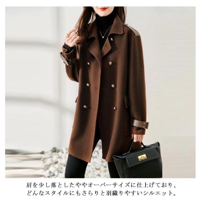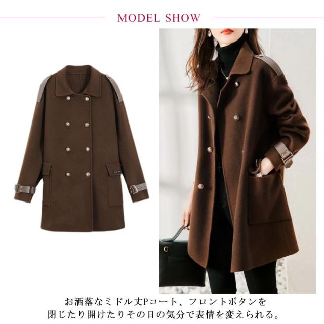 | 肩と袖口配色ベルトがクラシックでカッコいい。 お洒落なミドル丈Pコート、フロントボタンを閉じたり開けたりその日の気分で表情を変えられる。 裏側は中綿入りの厚手生地、寒い季節の防寒対策にバッチリ♪ 肌触りの良さや、見た目の上質さにもこだわったロングコート。 肩を少し落としたややオーバーサイズに仕上げており、どんなスタイルにもさらりと羽織りやすいシルエット。 ワンピースからパンツスタイルにプラスするだけでこなれ感の出せるアイテム。 | |