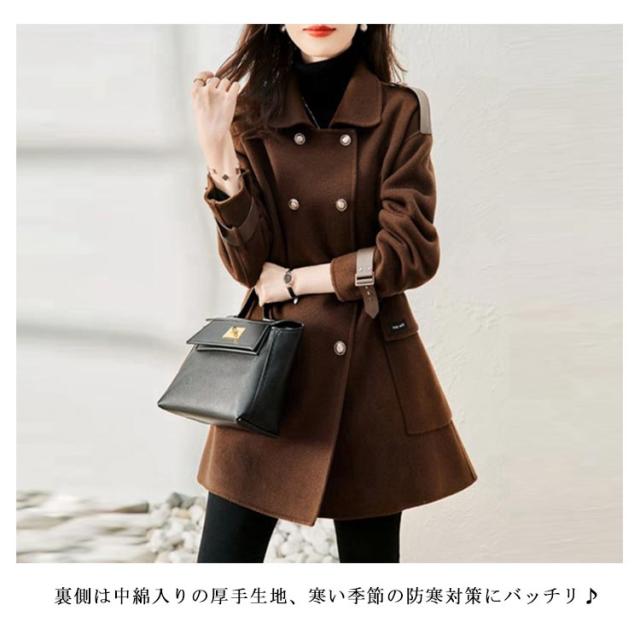 ロングコート ピーコート 厚手 レディース Pコート トレンチ風 大きいサイズ ダブルボタン 秋冬 チェスターコート 通勤 20代 30代 中綿入り