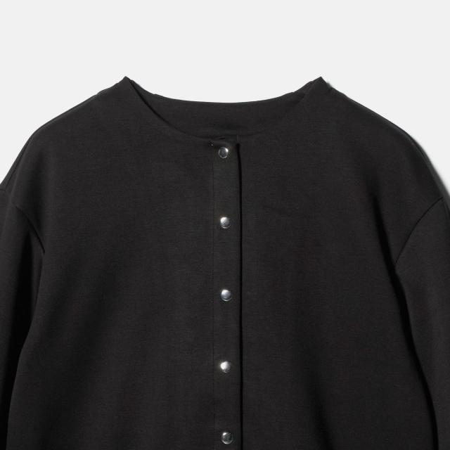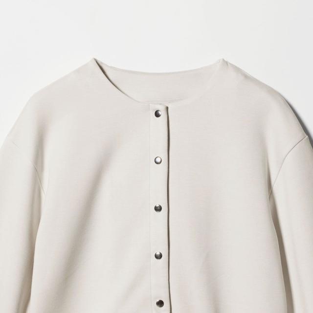 シルバーカラーのスナップボタンがポイントのカーディガン。