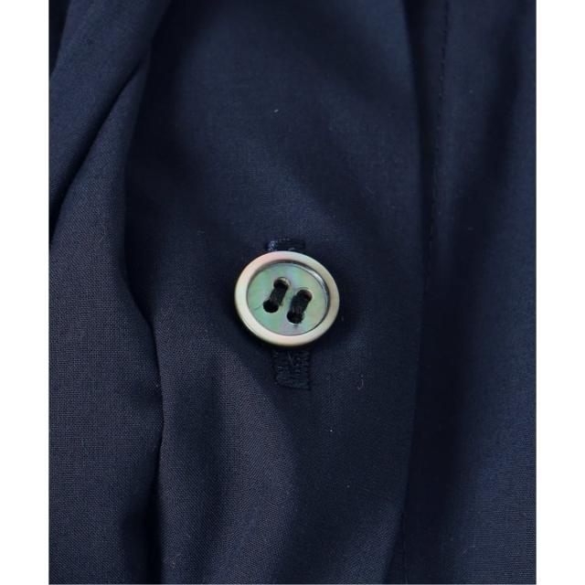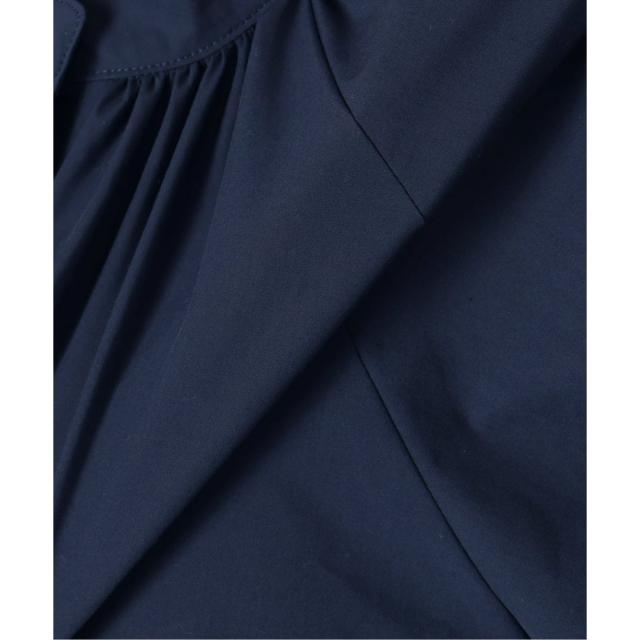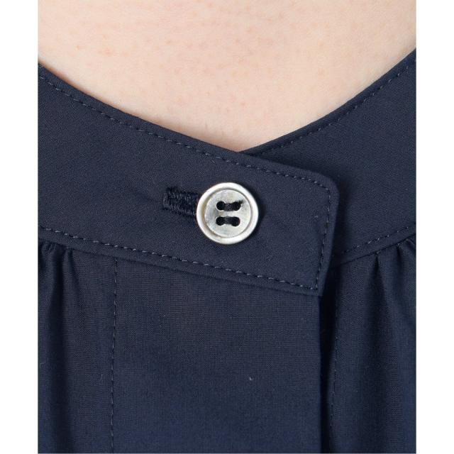 首元はすっきりとしたバンドカラーに、ギャザーを施すことで柔らかく立体的なシルエットを演出。