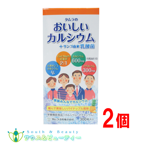タムラのおいしいカルシウム+サンゴ由来乳酸菌300粒 入り×2個(50日から100日分)栄養機能食品