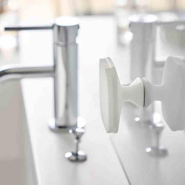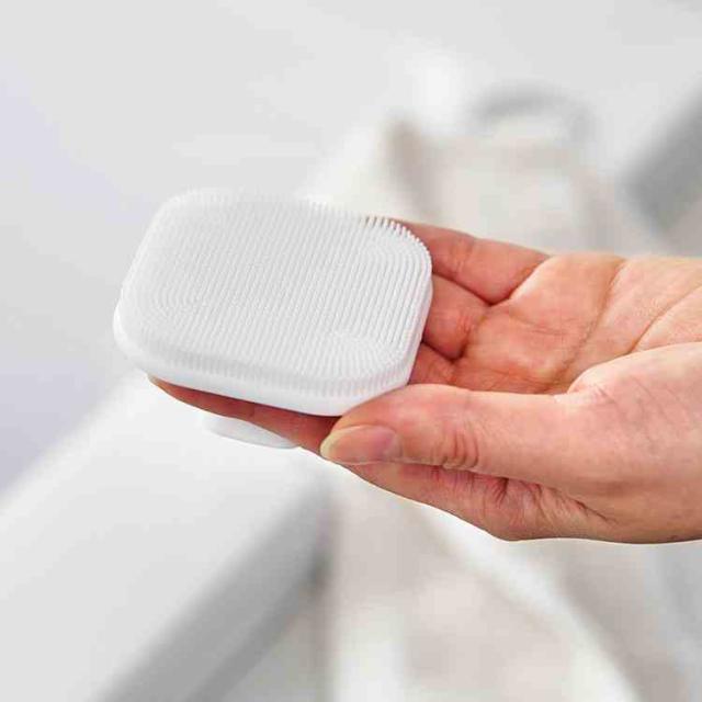 マグネットで浮かせて収納できる、シリコーン製のフェイシャルブラシです。洗面台や浴室の壁面にピタッと取り付けられるので、水切れが良く、衛生的に保管できます。置き場所に困らず、見た目もすっきり整います。ブラシ部分は、きめ細かくやわらかなシリコーン素材。やさしい肌あたりで、泡立てた洗顔料と合わせて使えばふんわり濃密な泡が広がり、摩擦を抑えながらやさしく洗い上げられます。