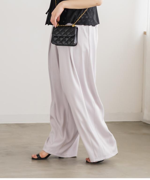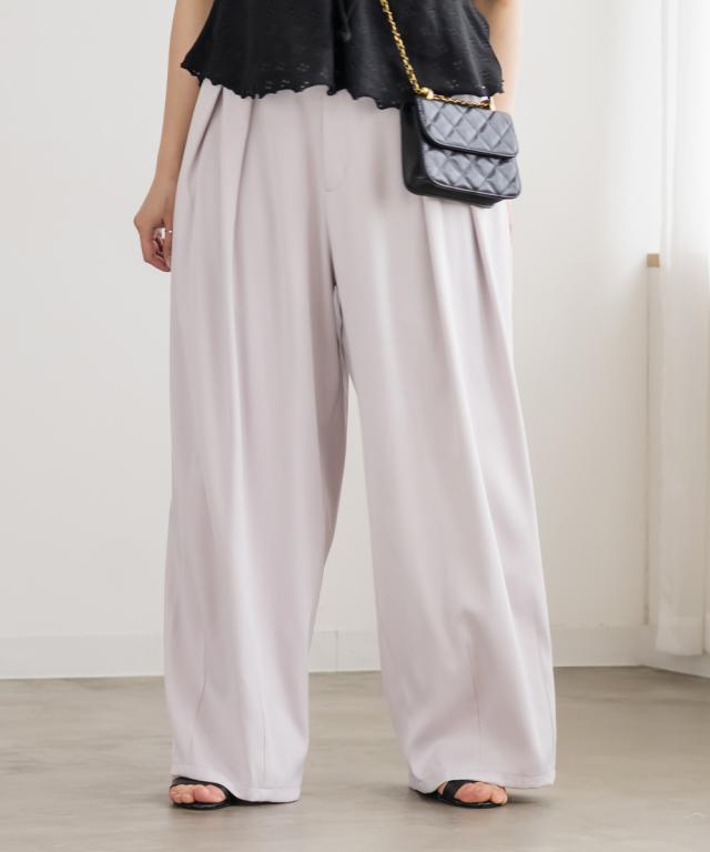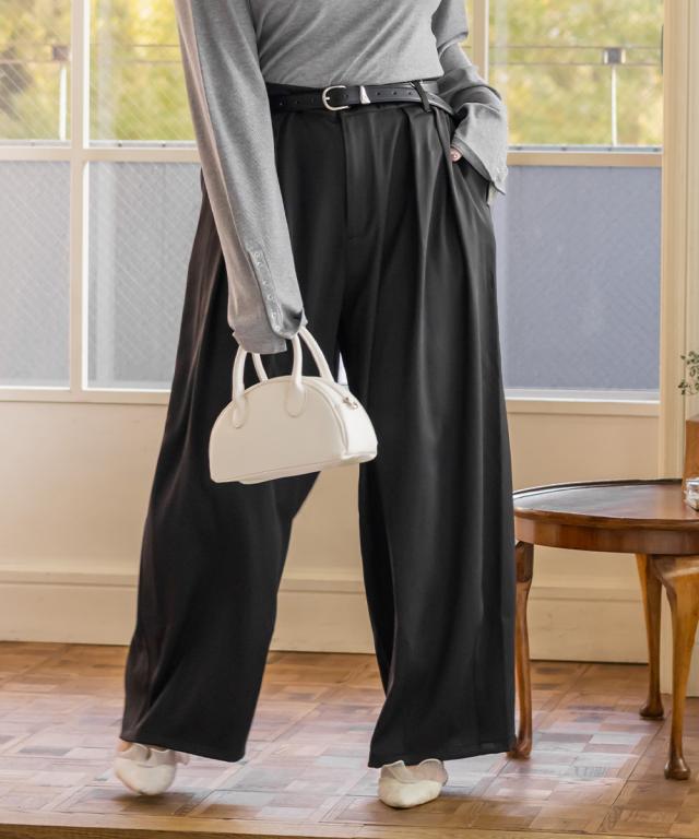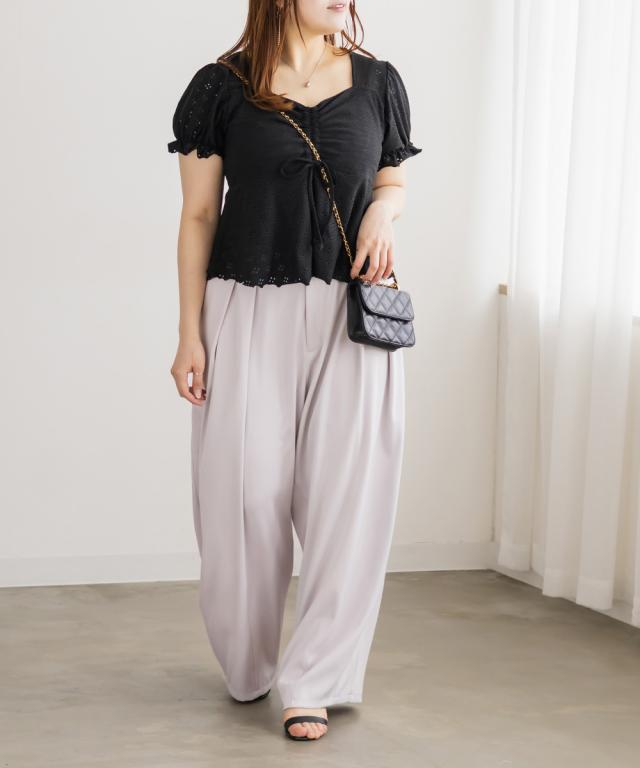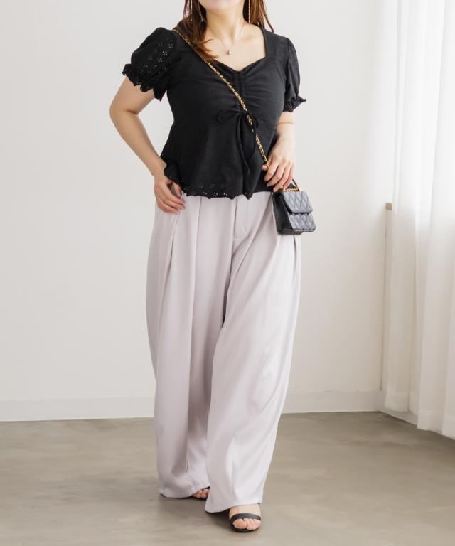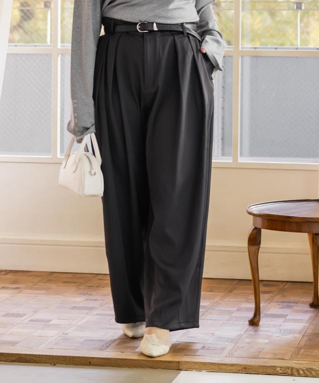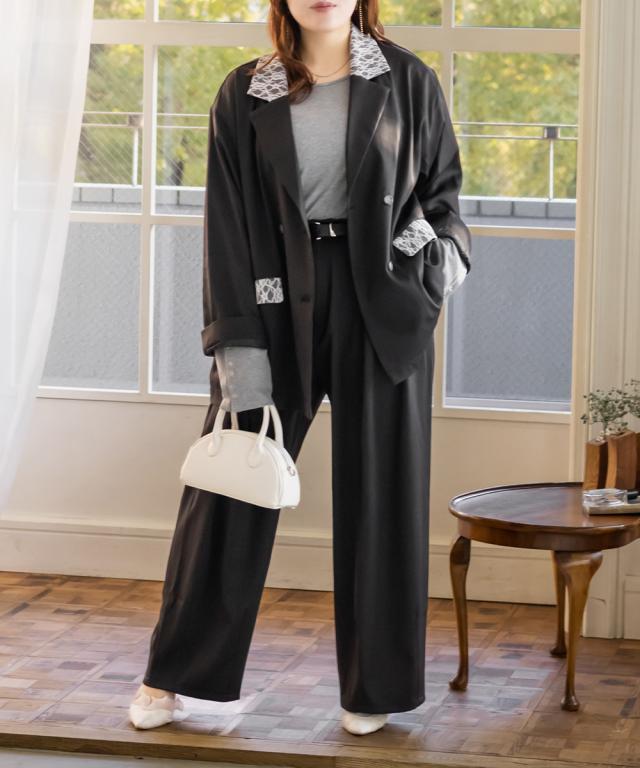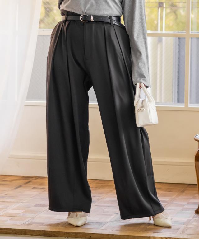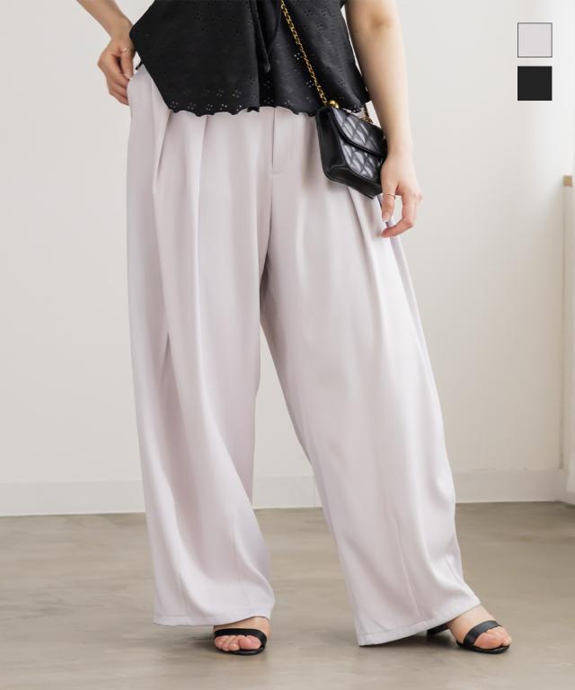 | 3Lサイズを着用してゆとりを持って着られてちょうどよかったです。いつも通りのサイズ選びで問題なさそうです◎大人っぽくすっきり見えるシルエットで、ワイドなので楽ちんな着心地です!フロントのタックのデザインが可愛くて、シンプルだけどお洒落な印象にもなれるアイテムです。フェミニンなトップスとも、シンプルなトップスとも相性がいいのでおすすめです。ブラックは同生地のジャケットとセットアップが可能です!シルエットがトレンド感たっぷりで、オールシーズン使える便利な1枚です! |