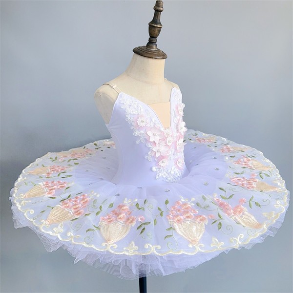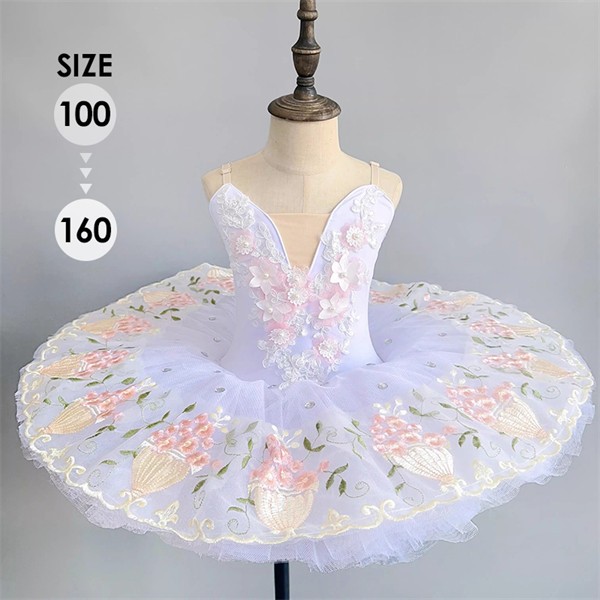 子供用バレエドレス 演出服 バレエチュチュ 子供 ダンス発表会 結婚式 演奏会 かわいい バレエ舞台衣装 子供用レースフリル プリンセスドレス 子供バレエ ホワイト 100〜160cm対応 n8003z7z7x7
