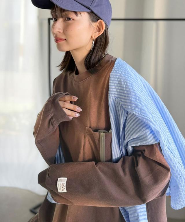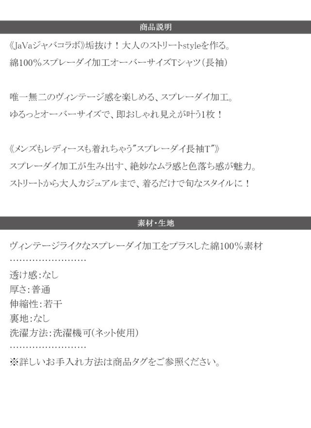クラシカルエルフ夏新作 java ジャバコラボ ロンt レディース 大きめ トップス Tシャツ 綿 100% スプレーダイ 加工 オーバーサイズ Tee 長袖 男女兼用 ユニセックス メンズ 大きいサイズ 2026ss jv1020358