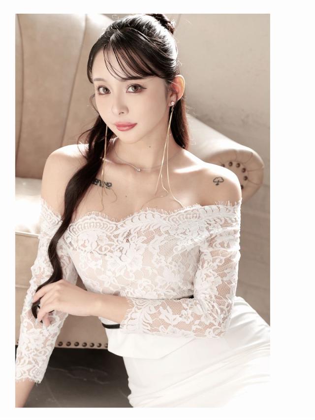 一部予約販売 キャバワンピース DaysPiece 韓国風 韓国style オフショルダー ペプラム風 七分袖 キャバ ワンピ