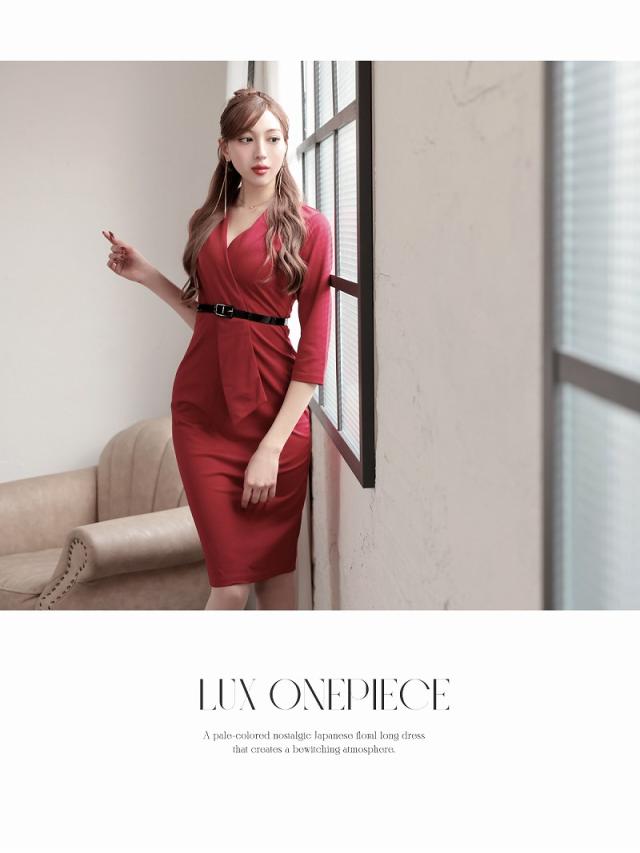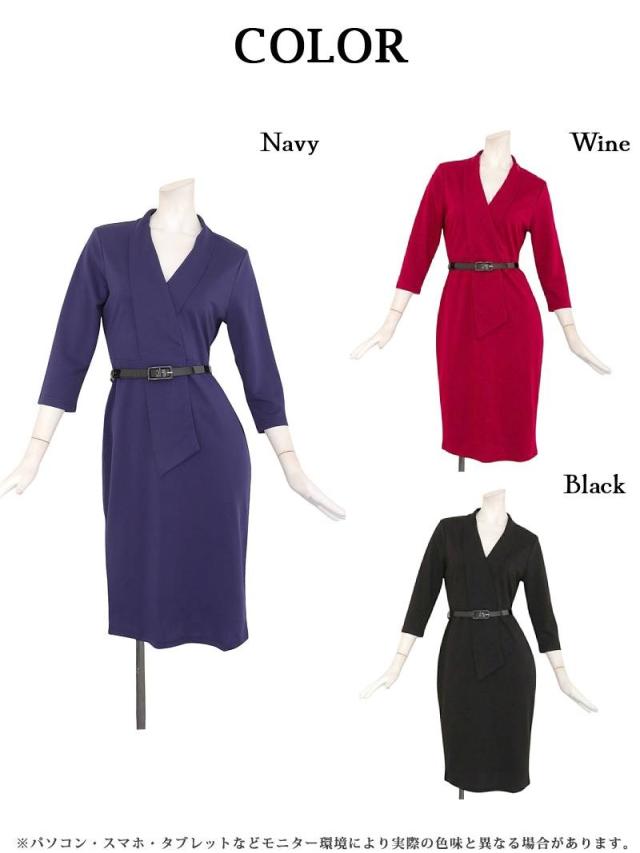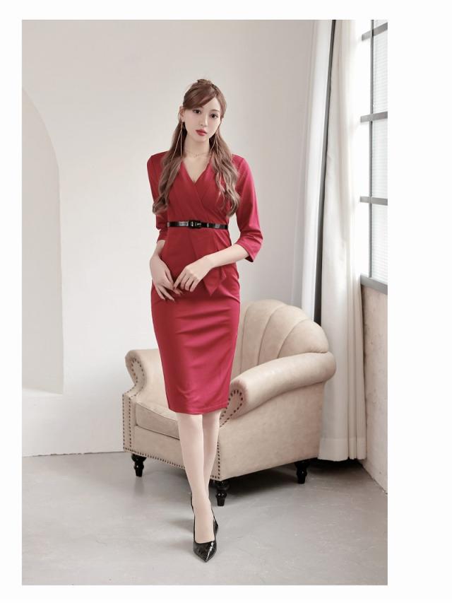 一部予約販売 キャバワンピース DaysPiece カシュクール ベルト付き 七分袖 ストレッチ ショール風の襟で可愛い キャ