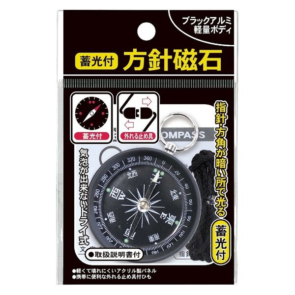 気泡が出来ないドライ式。指針・方角が暗い所で光る蓄光付。