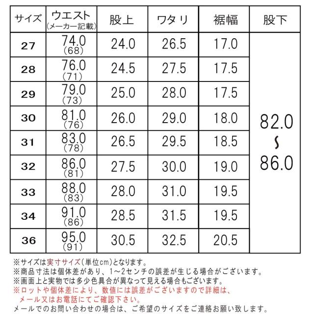 (ヌードサイズ表記とは数値が違いますので、お手持ちのパンツと測り比べてご注文ください。)