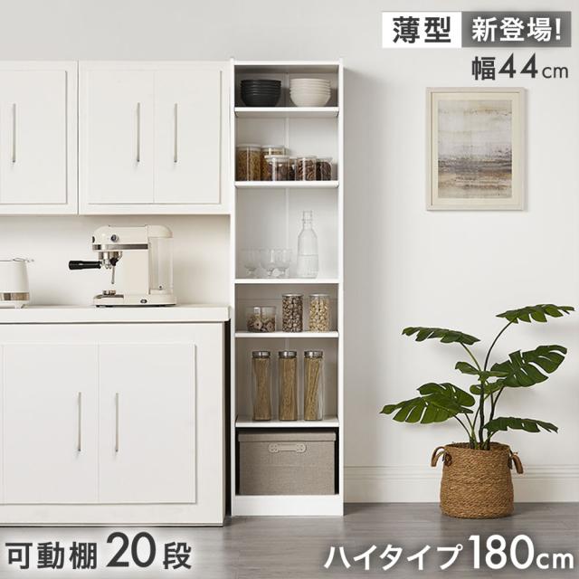 【薄型】本棚 大容量 ハイタイプ 幅44 高さ180 奥行29.5cm 木製 オープン 縦長 収納 棚 スリム 書棚 ブックシェルフ シェルフ 漫画 マンガ 本 コミック ラック コミックラック cd dvd 収納 A4 耐震 転倒防止