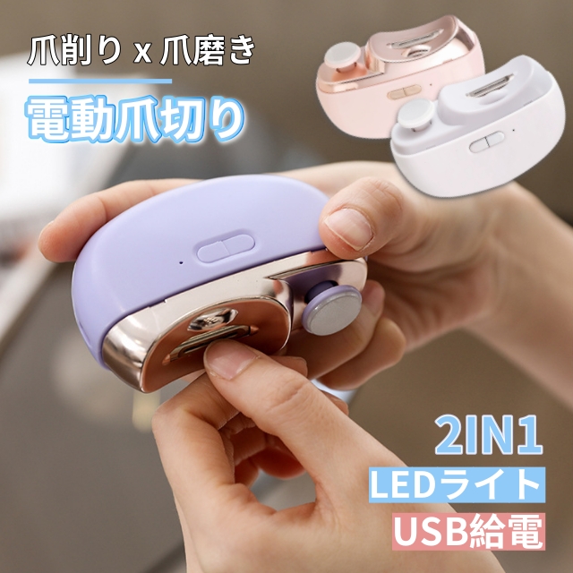 電動爪切り 爪切り 電動 2in1 LEDライト 爪削り 爪磨き つめきり 両用電動爪削り 自動爪切り ネイルケア 軽量 爪やすり 簡単操作 爪傷防止 安全 角質ケア 巻き爪 厚い爪 爪ケア 用 赤ちゃん 子供 大人 高齢者 介護 コンパクト 軽量 静音 自動 ネイルケア