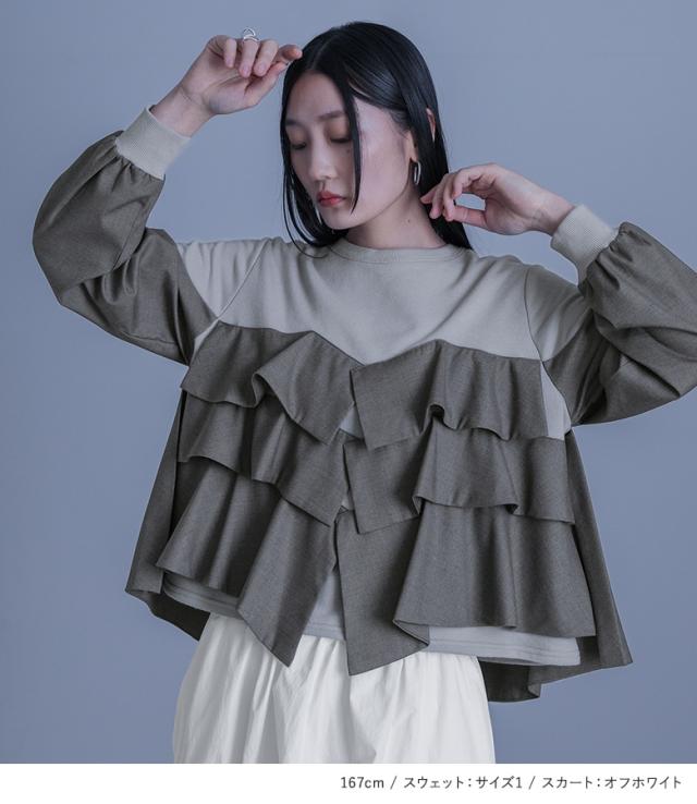 スウェット レディース トップス 長袖 フリル トレーナー ドッキング 異素材 ショート丈 カットソー プルオーバー クルーネック 変形 配色 無地 異素材MIX レイヤード 重ね着 春 秋 冬 ロングシーズン カジュアル モード キレカジ フェミニン ガーリー Sサイズ Mサイズ Lサイズ LLサイズ 3Lサイズ XLサイズ 10代 20代 30代 40代 50代 60代 低身長 高身長 ロングスカート ボトムス ドローストリング アシメ アシンメトリー シャーリング ナイロン 裏地付き ウエストゴム ミモレスカート 個性派スカート ミモレ丈 ロング丈 ドロスト おうちで洗える シンプル フリーサイズ ぽっちゃり 体型カバー 大きいサイズ 通勤 通学 お買い物 お出掛け 旅行 レジャー おしゃれ お洒落 トレンド 流行 大人女子 大人可愛い お洒落可愛い 大人カジュアル ラフ スタイリッシュ 洗練 エッジィ きれいめ かっこいい オフホワイト グレー ブラック 202603 2点セット プレゼント 福袋 コーディネートセット コーデセット 中身が見える福袋 上下セット ギフトセット[ID]11cp037