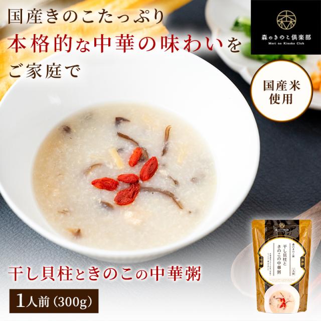 干し貝柱ときのこの中華粥 一人前 300g 単品 森のきのこ倶楽部 森のきのこ粥 レトルト 簡単調理 海鮮 干し貝柱 北海道産 粥