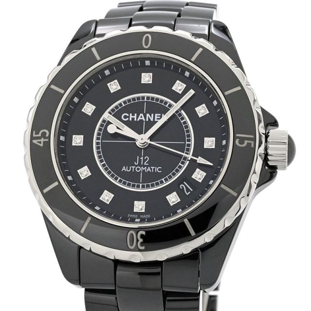 [3年保証] シャネル メンズ J12 H1626 ブラックセラミック ダイヤインデックス デイト ブラック 黒文字盤 自動巻き 腕時計 中古 送料無料