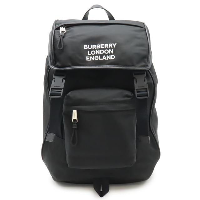 BURBERRY バーバリー ロゴプリント バックパック リュックサック ナイロン レザー ブラック 黒 シルバー金具 8018113
