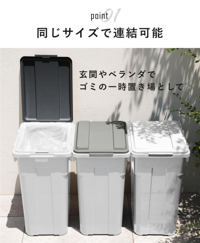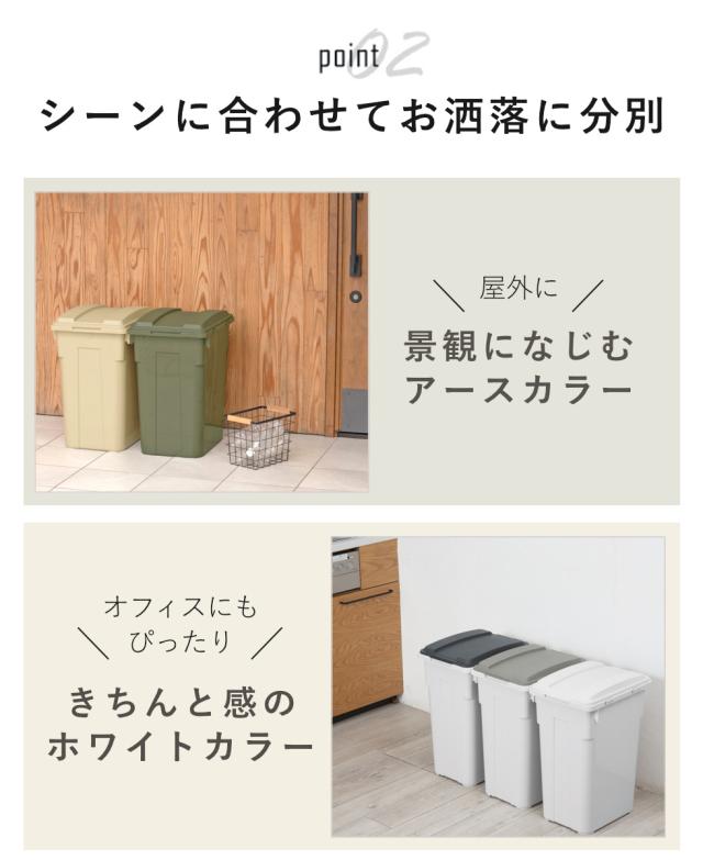 並べても場所を取らないスリム設計だから玄関やベランダにも。溜まったゴミを収集日まで部屋に置きたくない人におすすめです。