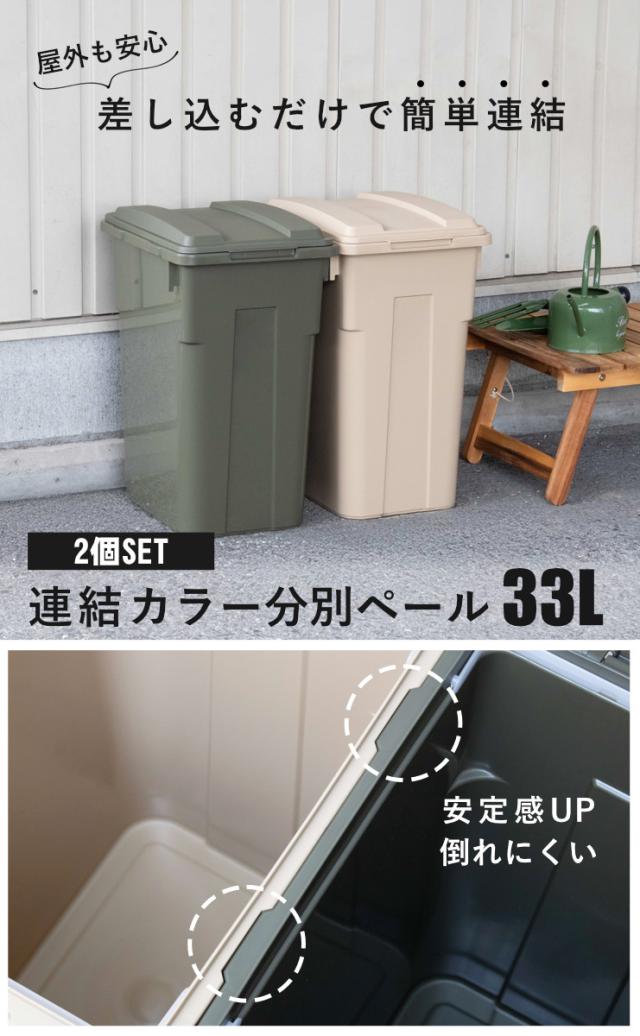 ゴミ箱 33L 2個セット 連結カラー分別ペール 屋外兼用 ( ごみ箱 45リットル 2個 ふた付き 角型 屋外 連結 プラスチック キッチン ダストボックス ペール 蓋つき 連結できる庭 外 フタ付き 袋 見えない )