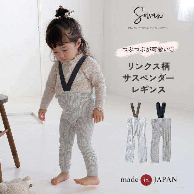 【日本製】サスペンダー レギンス tubutubuネップ リンクス柄 ベビー服 子供服 女の子 男の子 サロペット パンツ 赤ちゃん 可愛い 秋冬 冬用 新生児 幼児 保育園