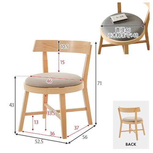 | 組成 | 主材:ビーチ集成材、天板:天然木化粧繊維板、張地:ポリエステル |