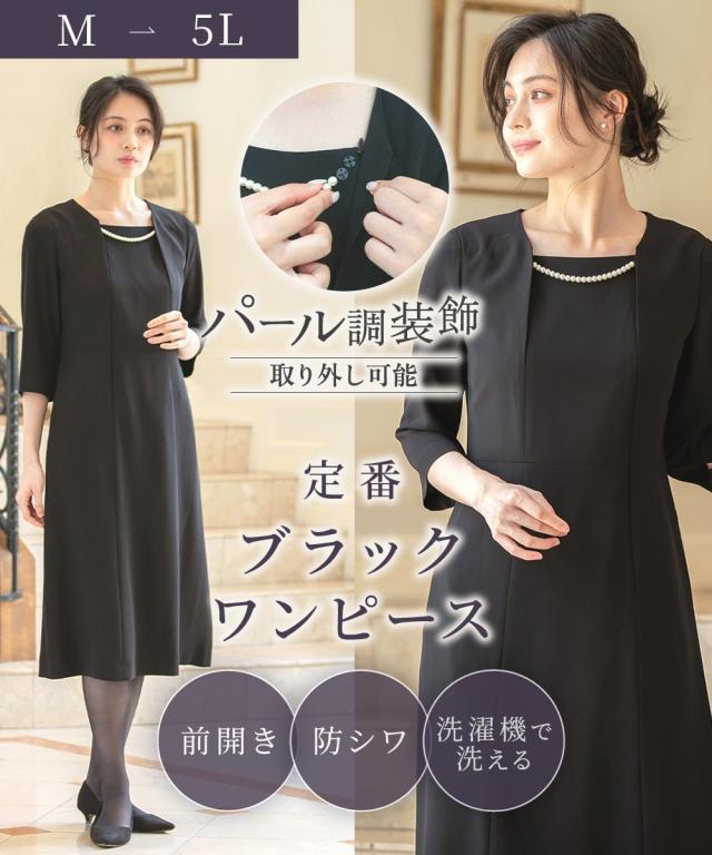 喪服 礼服 ブラックフォーマル レディース 洗える防シワパール ネックレス 付 前開き ワンピース 春 夏 秋 冬 冠婚葬祭 | M/L | ニッセン nissen