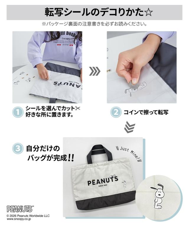 【スヌーピー】PEANUTSデザインのオリジナルバッグが作れる 転写シール付き 通園・通学バッグ