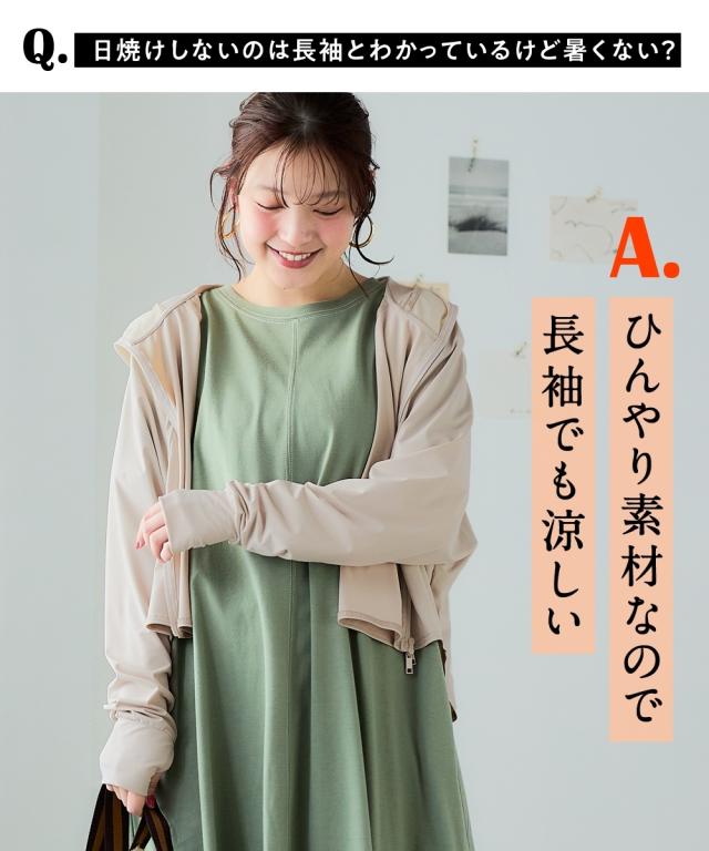強い日差しが気になる季節、日焼け止めだけでは不安なシーンも、深めのつば付きフードと手の甲まで隠れる指穴設計で徹底ガード。自転車移動やアウトドア、ちょっとしたお買い物まで、日常のあらゆる場面で「これさえあれば安心」と思える、機能美と快適さを両立させた一着です。UVカット、接触冷感、ストレッチという、夏に嬉しい3つの大きな機能を備え、暑い日でもサラリと涼しい着心地をキープします。体型を選ばないゆったりとしたポンチョシルエットで、お悩み解決と紫外線対策を同時に叶えます。