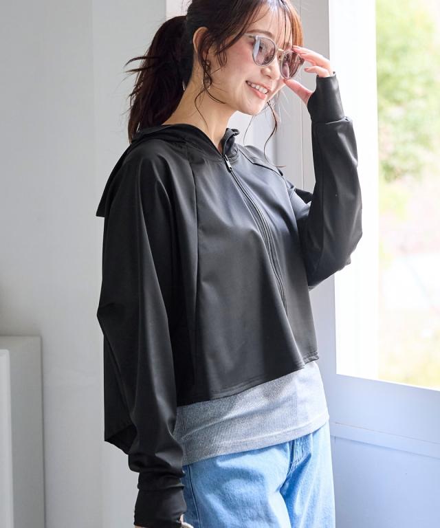 品質=[本体]ナイロン90%・ポリウレタン10% [別布部]ポリエステル100% 前ファスナー 着丈前後差有 指穴あり透け感:なし 伸縮性:あり 生地の厚み:薄い 光沢感:ややあり 裏地:なし ポケット:なし 季節:春・夏 シルエット:ゆったり 原産国:中国製 備考:洗濯機OK ネット使用