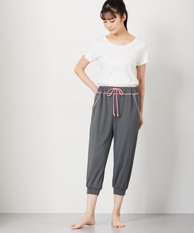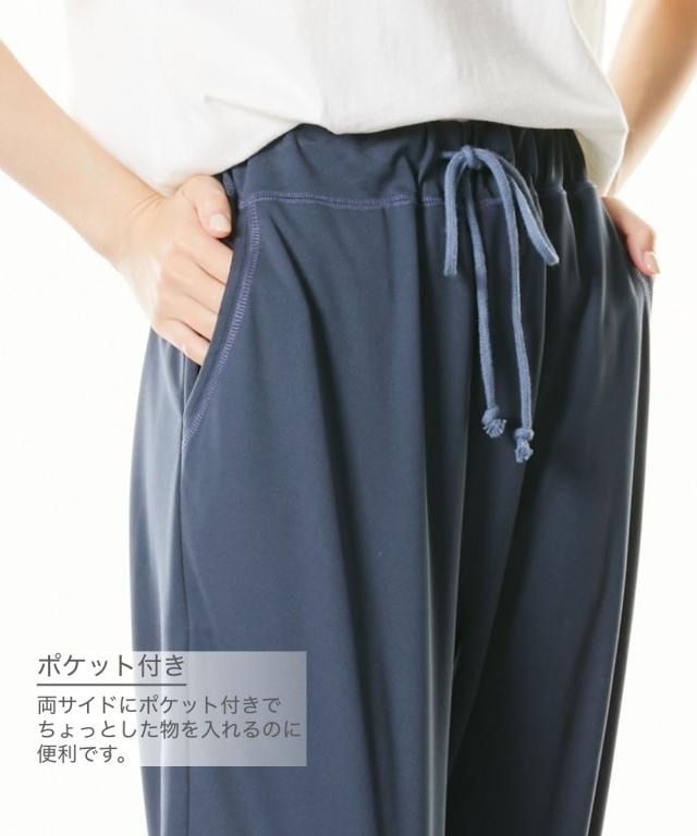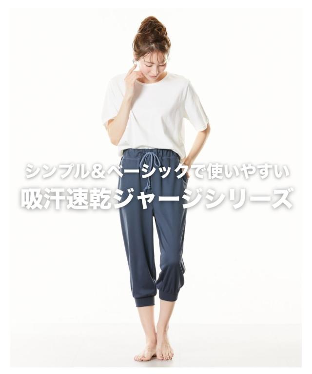 軽い!涼しい!サラサラ! 吸汗速乾ジャージシリーズ 動きやすく、ベタつきにくい。 吸汗速乾ジャージ素材のベーシックボトムシリーズが 1枚から買えるようになりました! ウエスト紐やポケットはなにかと便利。 家事や、おうちでのストレッチ、ヨガ、 テレワークに急な来客・・・ 自宅でのさまざまな場面で活躍します。 \こんな時におすすめです/ ・おうちでのリラックスタイムに ・就寝時のボトムとして ・家事をするときに ・ストレッチやちょっと運動するときに ・ごみ捨てや来客など、ちょっとそこまで・・・のときに ・テレワークのときに 【おすすめポイント】 ■アクティブに動ける7分丈 汗ばむ季節に選びたい、 足口切り替えの膝下7分丈ボトム。 アクティブなイメージで、 ストレッチやちょっとした運動にぴったりです。 肌の露出が苦手な方にもおすすめ。 ■飽きがこないデザイン シンプル&ベーシックなデザインだから使いやすい。 飽きもなく、着る人を選びません。 ■サラッと快適な吸汗速乾 ムレにくい吸汗速乾ジャージ素材を使用。 汗をかいてもサラッとベタつきにくい。 お洗濯後もすぐに乾くのが便利 ■肌触りサラサラ!軽くてラクな履き心地 メッシュ素材なので肌との