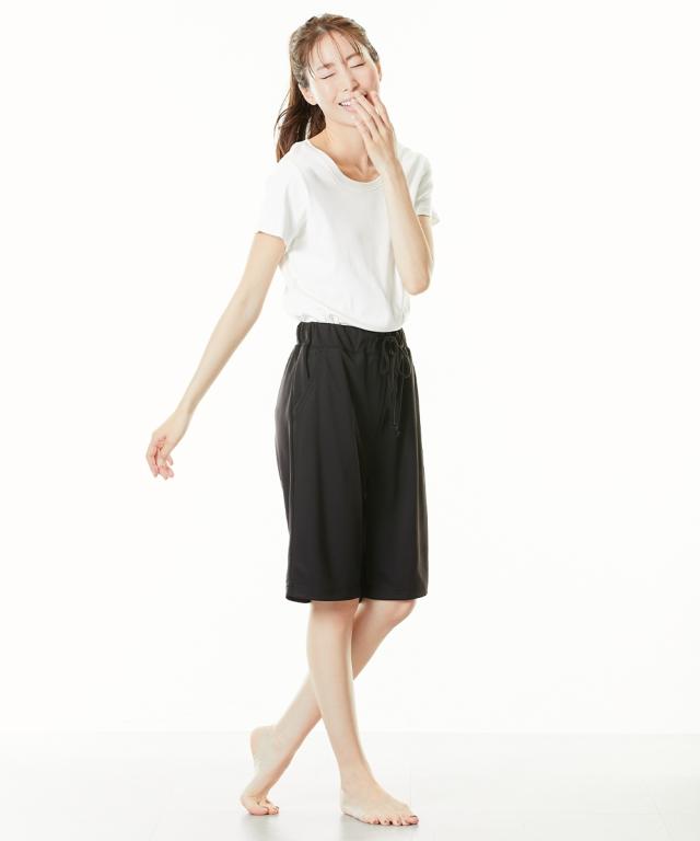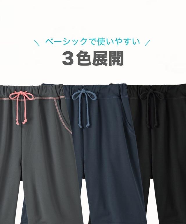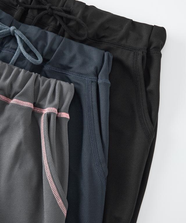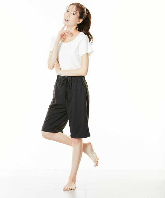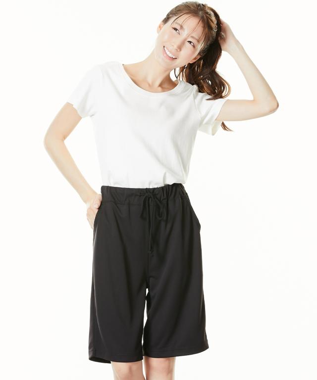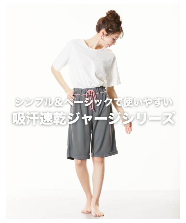 軽い!涼しい!サラサラ! 吸汗速乾ジャージシリーズ 動きやすく、ベタつきにくい。 吸汗速乾ジャージ素材のベーシックボトムシリーズが 1枚から買えるようになりました! ウエスト紐やポケットはなにかと便利。 家事や、おうちでのストレッチ、ヨガ、 テレワークに急な来客・・・ 自宅でのさまざまな場面で活躍します。 \こんな時におすすめです/ ・おうちでのリラックスタイムに ・就寝時のボトムとして ・家事をするときに ・ストレッチやちょっと運動するときに ・ごみ捨てや来客など、ちょっとそこまで・・・のときに ・テレワークのときに 【おすすめポイント】 ■夏にうれしいハーフ丈 軽くて涼しい、暑い季節にピッタリなハーフ丈。 アクティブなイメージで、 ストレッチやちょっとした運動にぴったりです。 ■飽きがこないデザイン シンプル&ベーシックなデザインだから使いやすい。 飽きもなく、着る人を選びません。 ■サラッと快適な吸汗速乾 ムレにくい吸汗速乾ジャージ素材を使用。 汗をかいてもサラッとベタつきにくい。 お洗濯後もすぐに乾くのが便利 ■肌触りサラサラ!軽くてラクな履き心地 メッシュ素材なので肌との接地面も少なくサラサラ。 通気性がよく、涼しくて