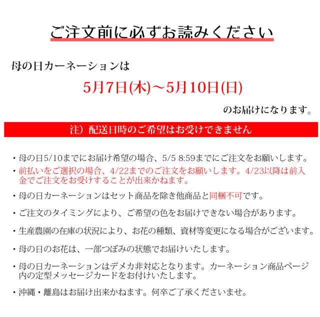 ※母の日カーネーションはセット商品を除き他商品と同梱不可です。