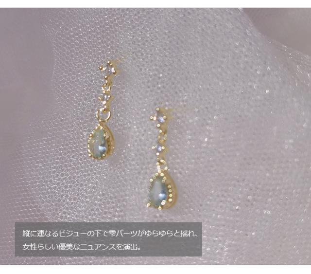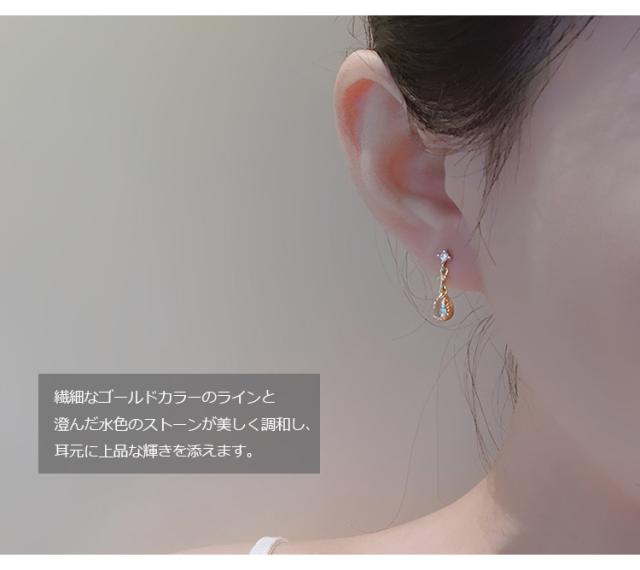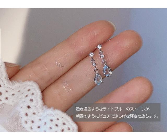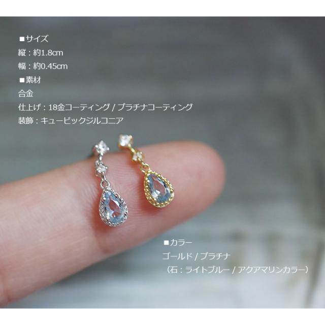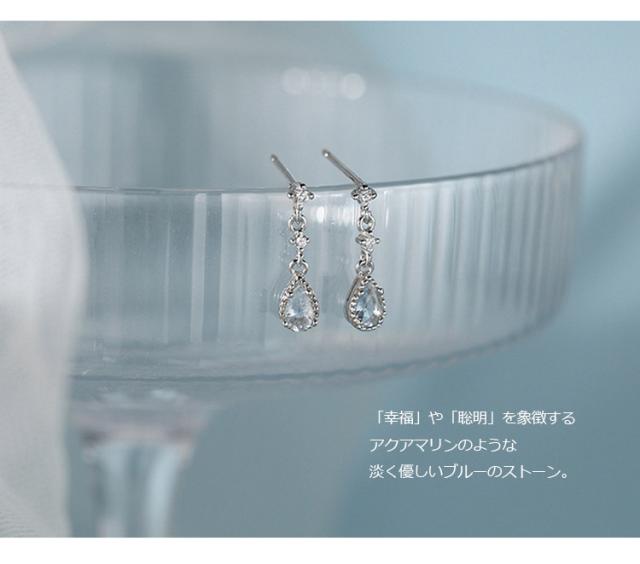ピアス レディース ドロップ 雫 しずく 水色 アクアマリン カラー 揺れる スタッドピアス キュービックジルコニア 18kコーティング ゴールド プラチナ 金属アレルギー対応 3月 誕生石 カラー 上品 華奢 大人可愛い おしゃれ 通勤 通学 プレゼント ギフト 送料無料