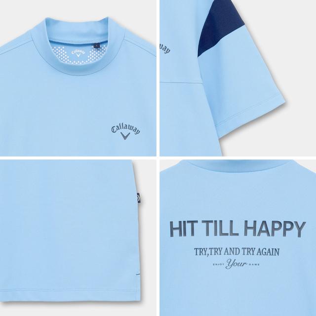 肩口に配色切替が施されたスポーティーデザインが特徴のモックネックです。背面にはフォントの異なるロゴが配置されており、カジュアルな印象を与えます。背裏には「ひんやり感」を得られるクールフェスタを搭載しています。品番:C26134107