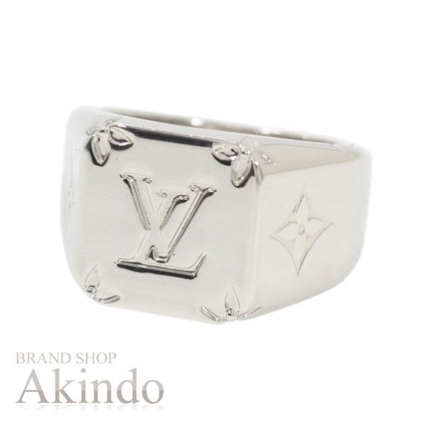 【新品同様】ルイヴィトン シグネット リング モノグラム Mサイズ 19号 指輪 シルバー メンズ レディース 重量感 M62487 LOUIS VUITTON ブランド プレゼント カジュアル エレガント ビトン ファッション オシャレ