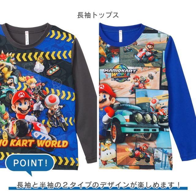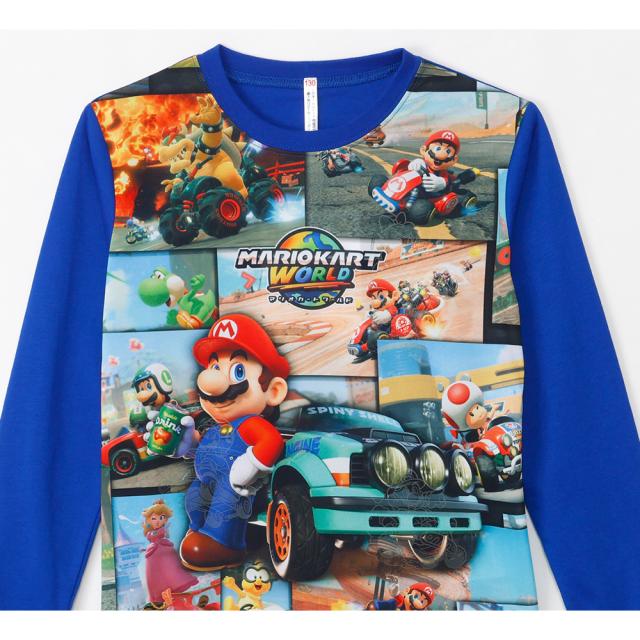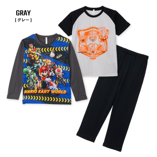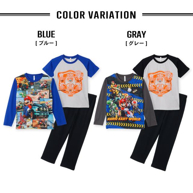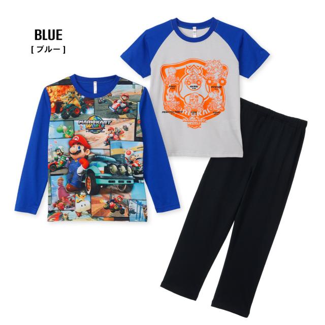 マリオカートワールド 2TOPS パジャマ キッズ ルームウェア 男の子 長袖 半袖 2枚セット 春 夏 秋 Tシャツ素材 ブルー グレー 100 110 120 130 キャラクター お泊まり プレゼント 子供 ボーイズ ジュニア 42553