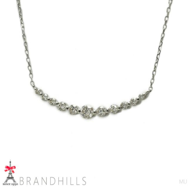 柔らかなカーブにダイヤモンドがグラデーションにあしらわれたネックレス。光のラインが胸元を彩ります。