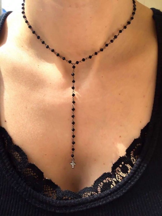 [ 8日から12日程度でお届け予定 ] ジュエリー レディース ネックレス 1個 ゴシック クロス ペンダント 字型 黒水晶ビーズネックレス、女性の信仰祈りの集まり、パーティー、日常着、休日のジュエリーに適しています (ビーズの個数はランダム)