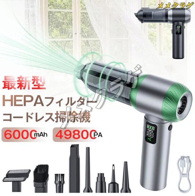 コードレス掃除機 ハンディクリーナー 49800PA 強力吸引 ブラシレスモーター HEPAフィルター 残量表示 LEDライト照明 ハンド掃除機 車内掃除機