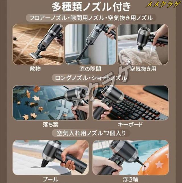 ・【多機能ノズル】 車載用掃除機が吸引と吹き出しの両方の機能を備えており、さらに吸引ノズルと吹き出しノズルが付属してます。清掃の目的や要件に応じて各ノズルを選択して使用できます。これにより、車内のゴミやほこりの吸引だけでなく、エアコンや細かい箇所の吹き出しにも効果的に対応できます。ユーザーは必要に応じてノズルを組み合わせることで、より幅広い清掃ニーズに対応することができます