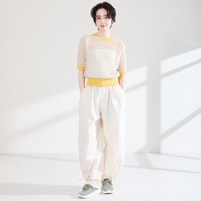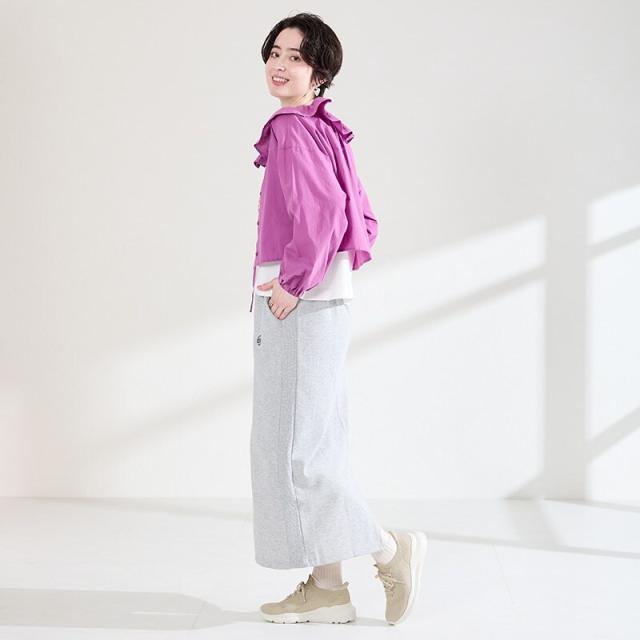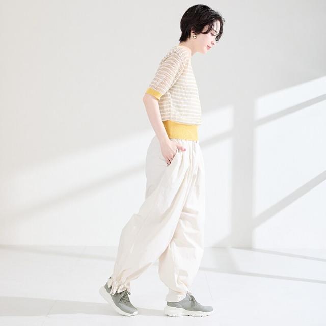 フィット感のあるニット素材と、さっと履けるハンズフリー仕様で