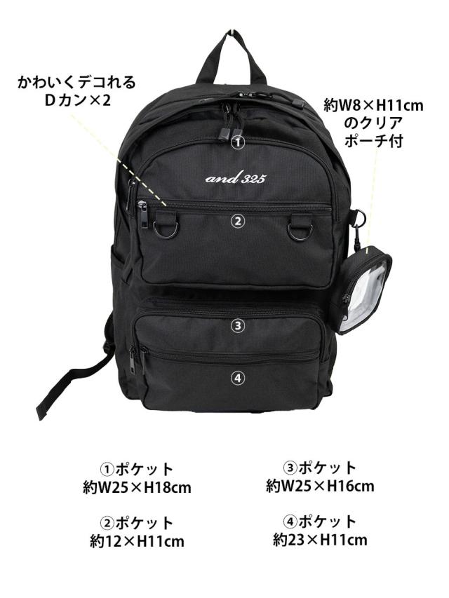 | 商品名 | and325 2ポケット ポーチ付リュック MRA02 |