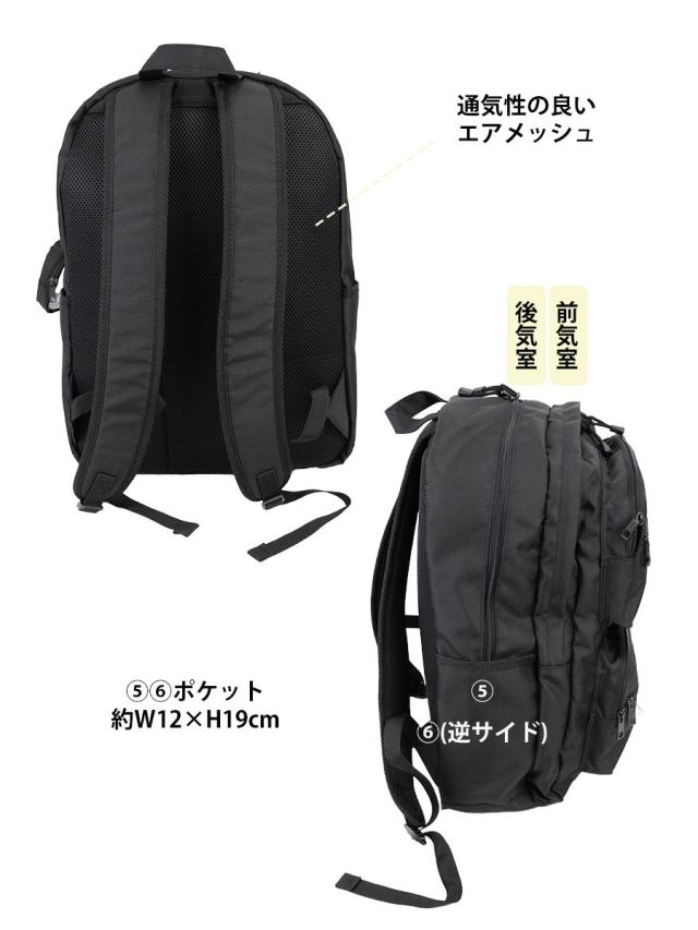 ■仕様:【前面】ポケット×4【後気室】PCポケット×1、ポケット×4【両側面】ポケット×1