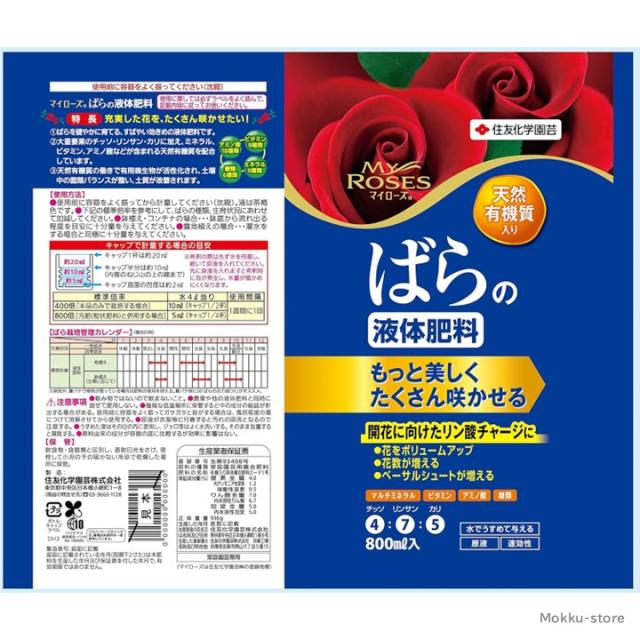 マイローズ ばらの液体肥料 800ml バラ ガーデニング 園芸 植物由来 天然有機質 土壌 改善 薔薇 ミネラル ビタミン アミノ酸 糖類 住友化学園芸